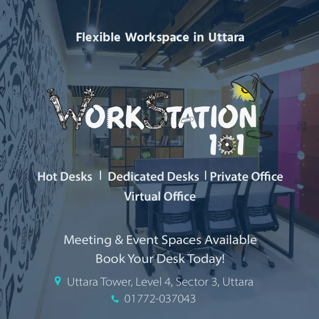 WorkStation 101 | 01772037043 | Uttara Tower, Level 4, 1 Jashimuddin Avenue, Sector 03, Uttara C/A Dhaka 1230 | Co-working space |