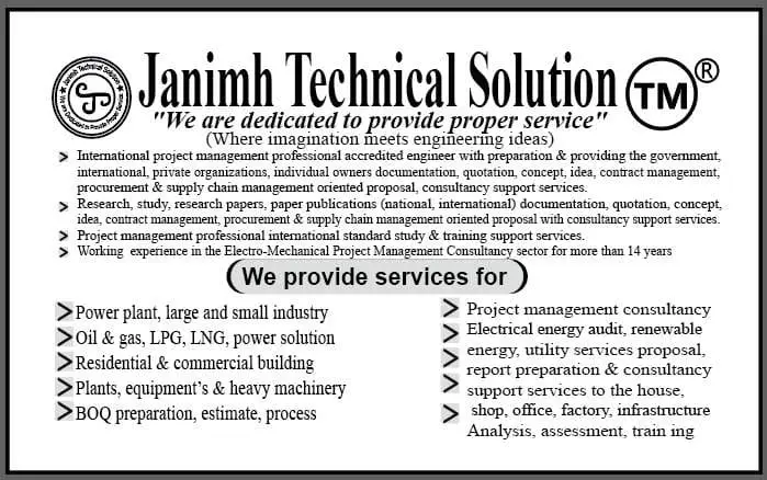 জ্যানিম টেকনিক্যাল সল্যুশন (Janimh Technical Solution) একটি পেশাদার প্রতিষ্ঠান যা Construction, proposal preparation, estimate, ও drawing design preparation-এর মাধ্যমে বিভিন্ন প্রকল্পে সমন্বিত টেকনিক্যাল সেবা প্রদান করে। প্রতিষ্ঠানটি land assessment, report generation, ও documentation works দক্ষতার সঙ্গে সম্পন্ন করে থাকে। এছাড়াও, তারা execution, retrofitting works, renovation works, এবং structural modifications সংক্রান্ত কাজের জন্য বিশেষজ্ঞ সহায়তা প্রদান করে। জ্যানিম টেকনিক্যাল সল্যুশন আধুনিক electrical solutions এবং প্রকৌশল জ্ঞান ব্যবহার করে প্রতিটি প্রকল্পে গুণগত মান, নিরাপত্তা ও দক্ষতা নিশ্চিত করে গ্রাহকদের সন্তুষ্টি অর্জন করে চলেছে।